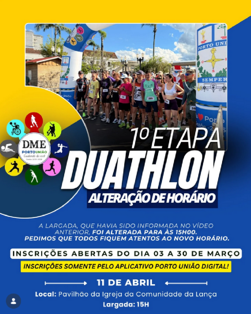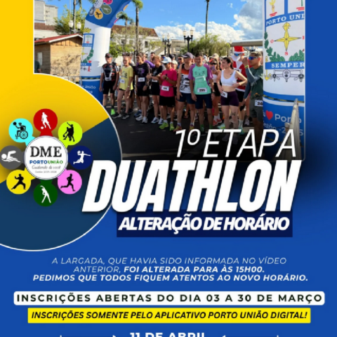 Atletas e amantes do esporte já podem se preparar para mais um grande desafio: o Duathlon do município está confirmado e promete reunir competidores em uma prova marcada por superação, resistência e espírito esportivo. A organização divulgou uma atualização importante: a largada, que antes