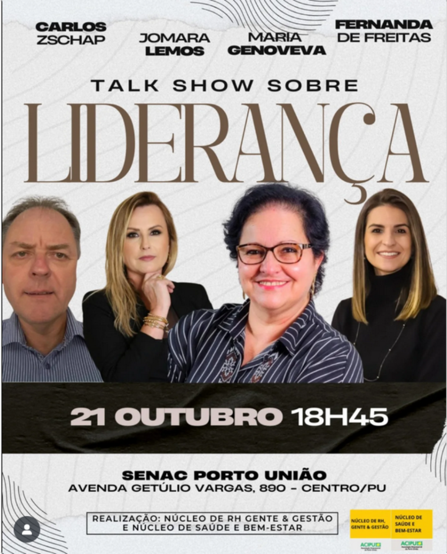A Associação Empresarial de Porto União (ACIPU) realiza no próximo dia 21 de outubro, às 18h45, no Senac Porto União, o Talk Show “Liderança em Foco”, um evento gratuito que promete inspirar e fortalecer o papel da liderança nas organizações.