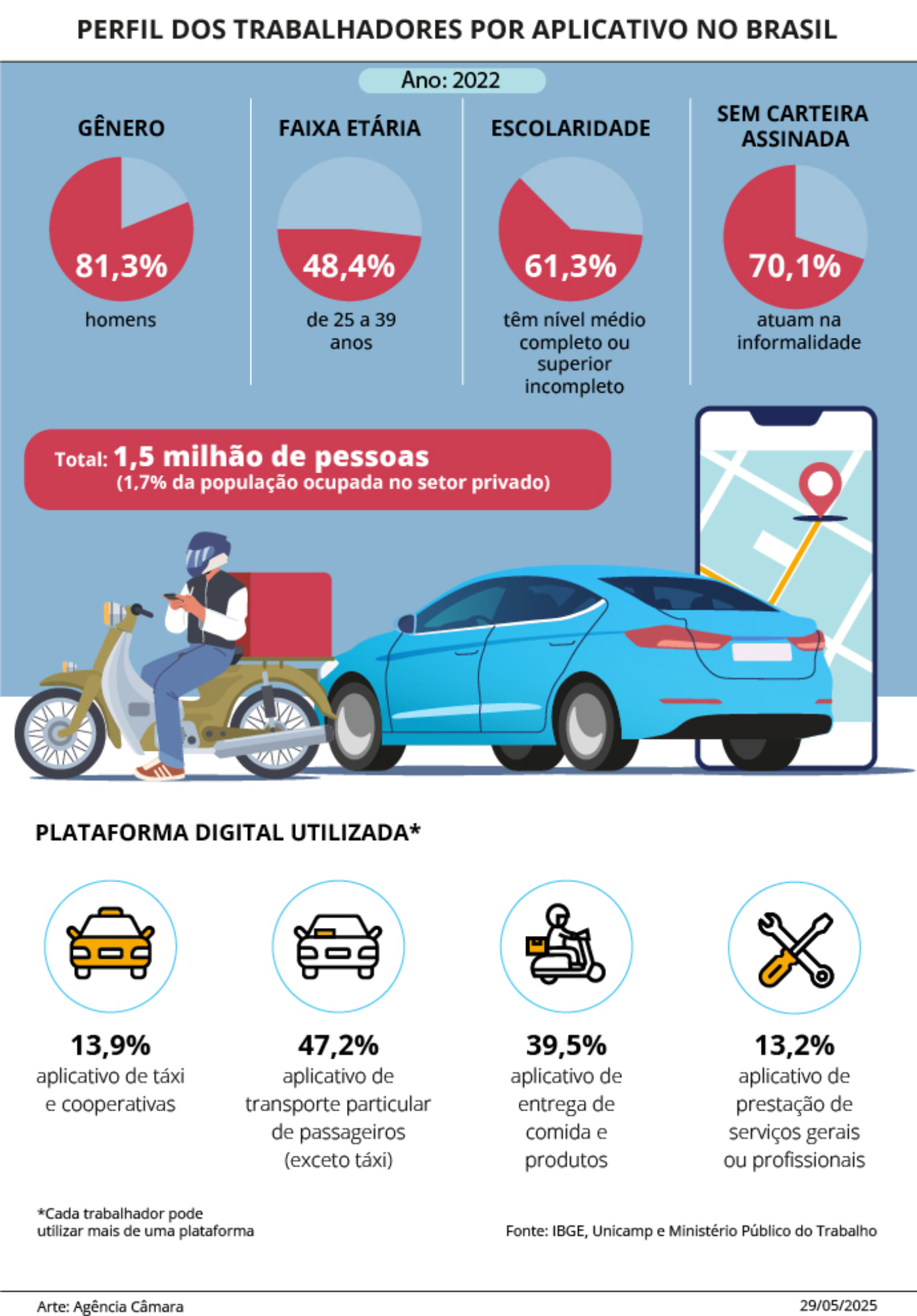 Entre os principais pontos da proposta, destacam-se a criação de um novo marco legal para plataformas digitais de transporte e entregas, com obrigações tanto para as empresas quanto para os usuários e trabalhadores.