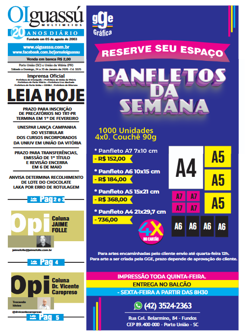 Edições Impressas Ed 5525- 2026-01-24 e 25- Sáb e Dom 25 de janeiro de 2026 Ed 5525- 2026-01-24 e 25- Sáb e Dom Read More
