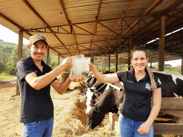 Os rodutores Jozidi e Elaine Grolli comemoram a certificação da propriedade em Santiago do Sul – Foto: Arquivo Pessoal / Cidasc
