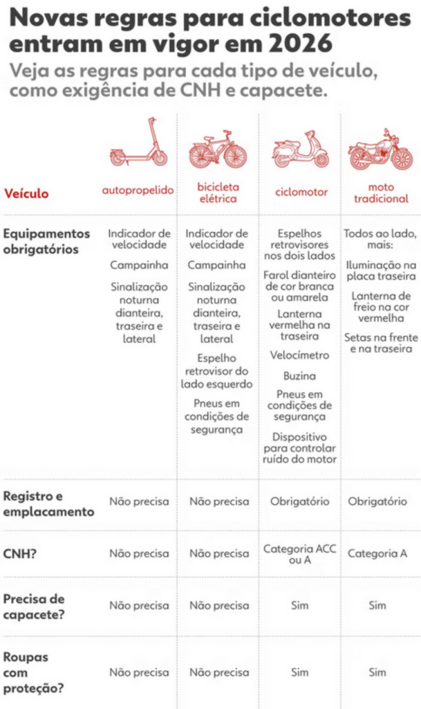 Desde inicio de 2026, passam a valer as novas regras de registro para ciclomotores. Rodar sem documentação é infração gravíssima, com multa de R$ 293,47