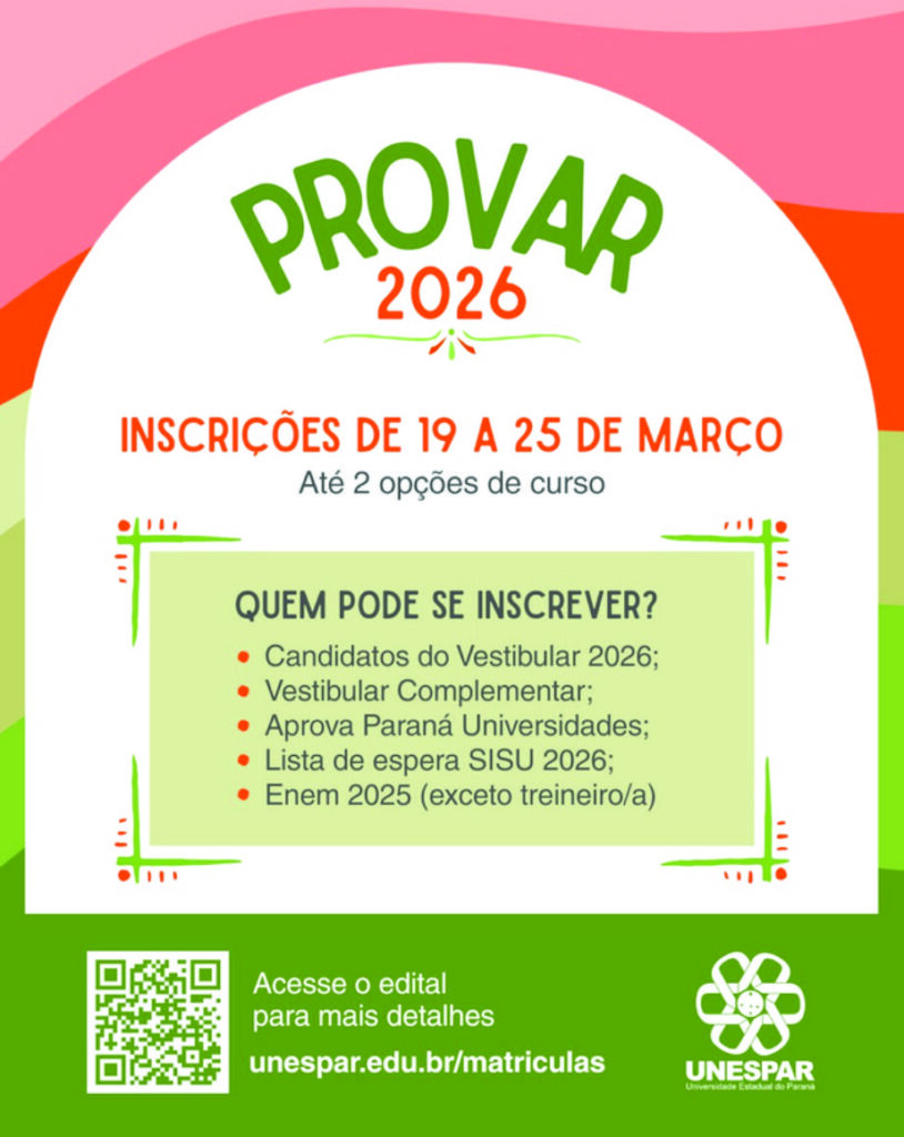 Estão abertas, até o dia 25 de março, as inscrições para o Processo Seletivo para Ocupação das Vagas Remanescentes (Provar 2026) da Universidade Estadual do