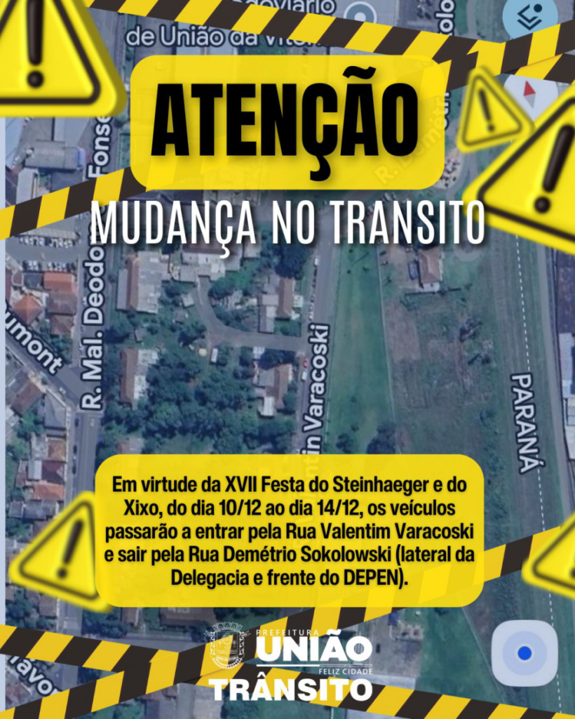 Mudanças valem de quinta-feira, 11, até domingo, 14 A Secretaria Municipal de Trânsito de União da Vitória informa que o acesso ao estacionamento da 17ª