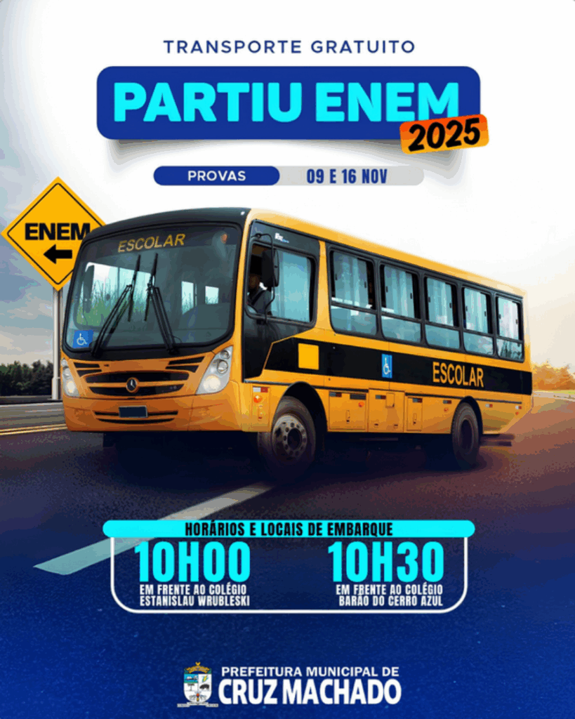 A Prefeitura Municipal de Cruz Machado informa que, assim como nos anos anteriores, irá disponibilizar transporte gratuito para os estudantes do município que participarão do