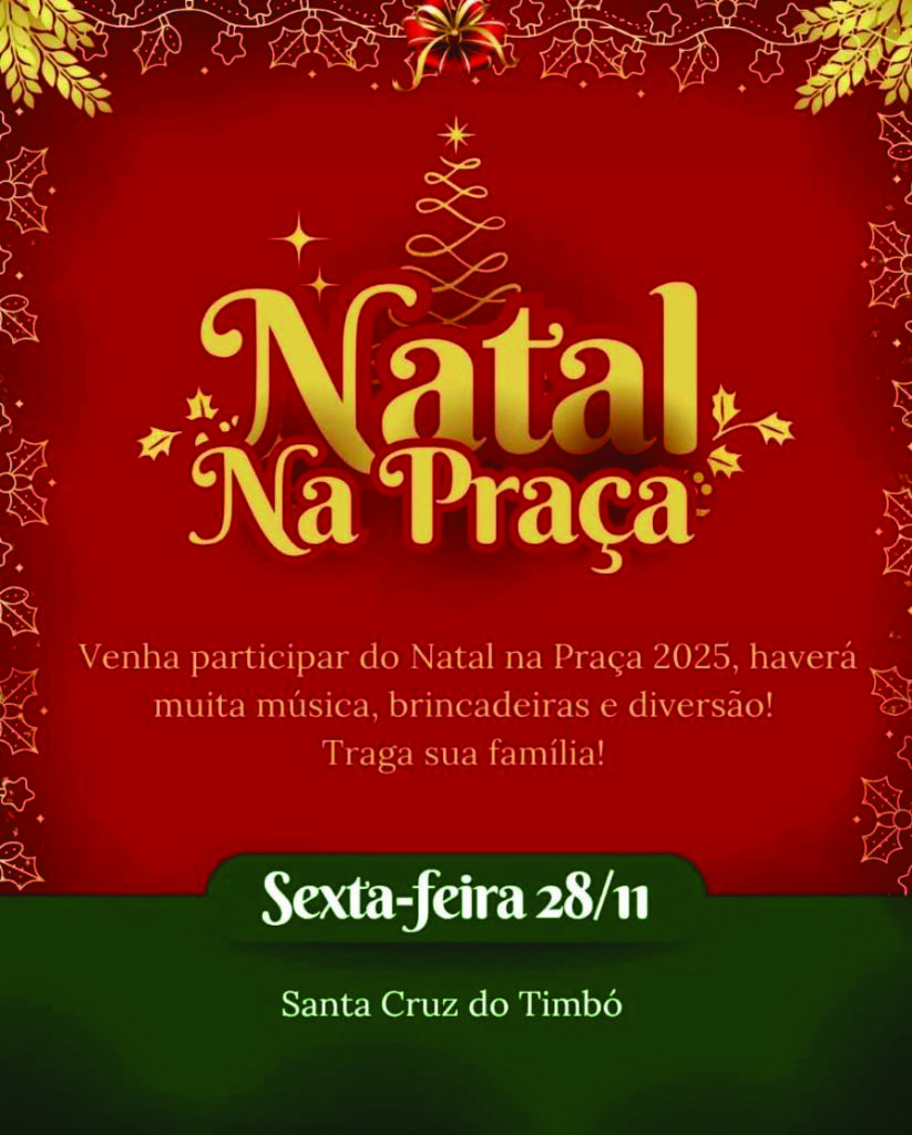 Começa nesta sexta-feira, 28 de novembro, o primeiro Natal na Praça Martin Eisenberg, em Santa Cruz do Timbó. A programação promete reunir famílias e visitantes