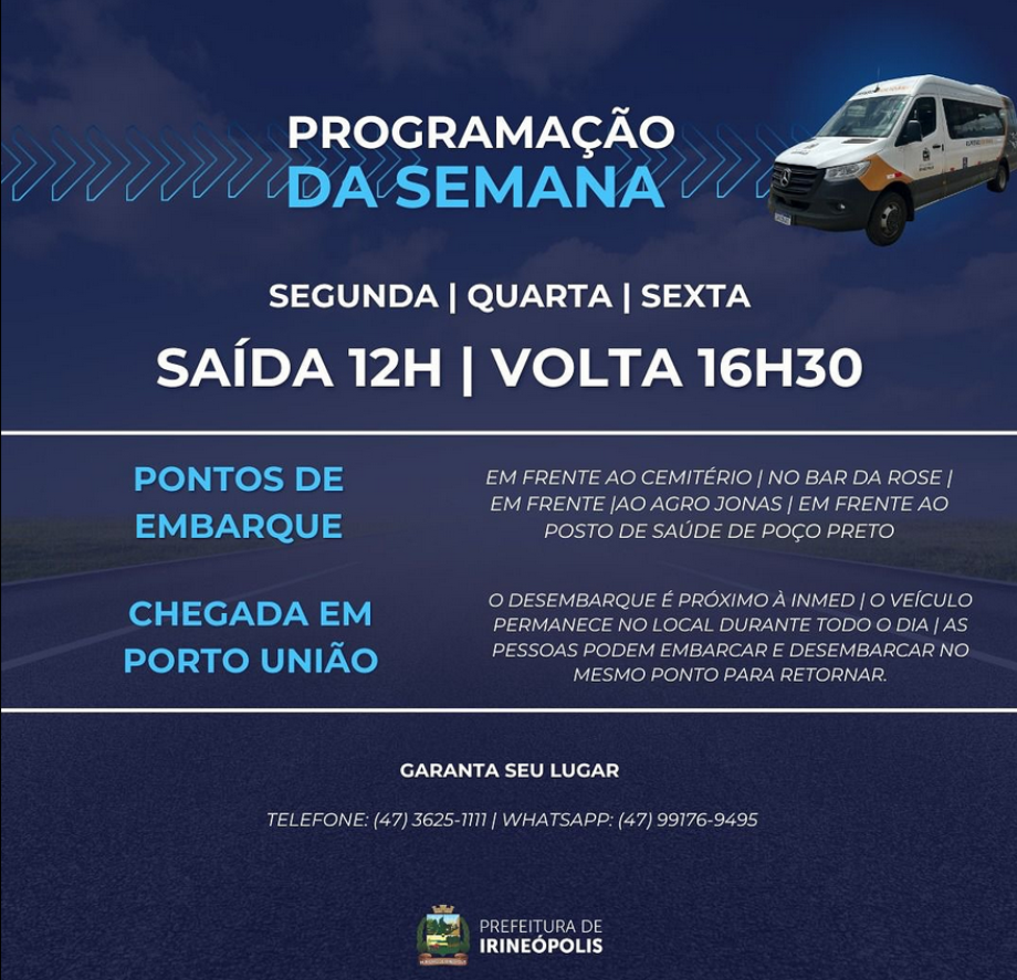 Desde Agosto a comunidade de Irineópolis conta com o projeto Van Expresso Solidário, que oferecerá viagens gratuitas com destino a Porto União. A iniciativa tem
