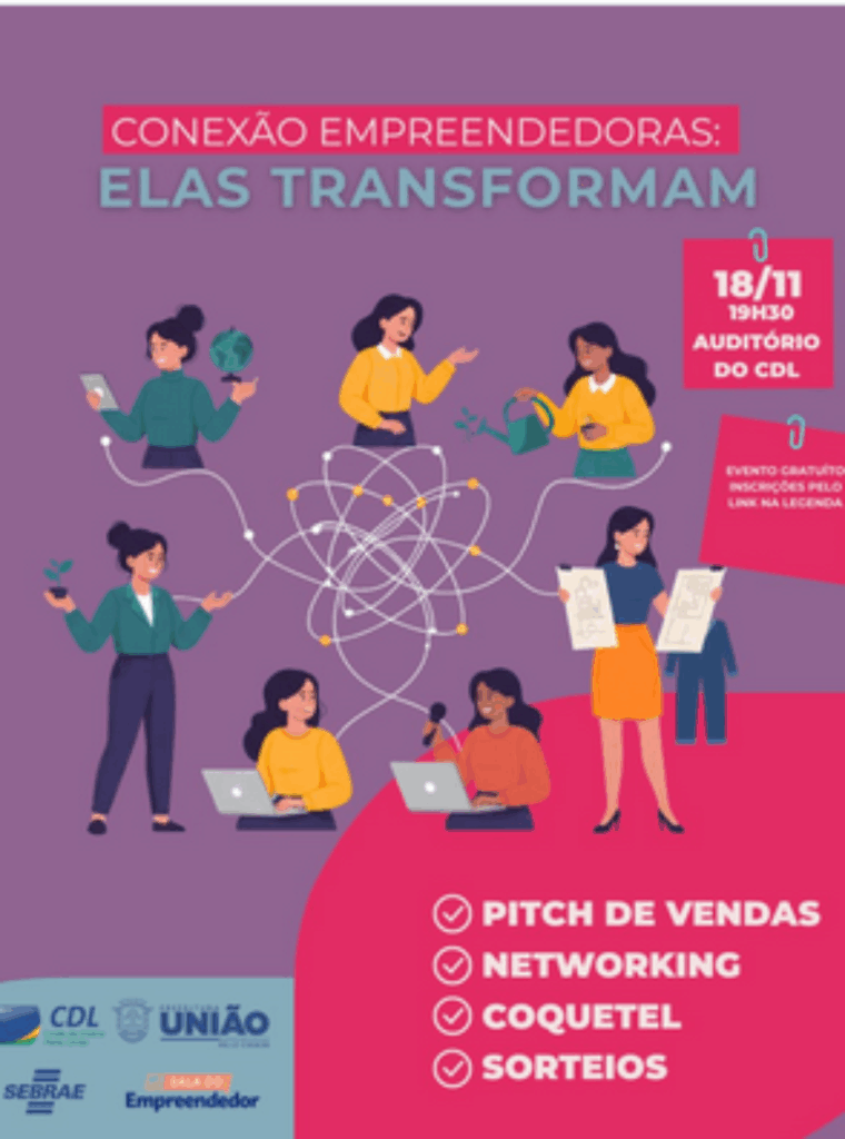 A Sala do Empreendedor de União da Vitória realiza, no dia 18 de novembro, às 19h30, o evento “Conexão Empreendedora: Elas Transformam”, no auditório da