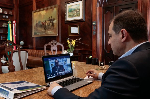 O governador Carlos Moisés participou na tarde desta terça-feira, 20, de webconferência com o ministro da Saúde, Eduardo Pazuello e demais governadores. Na pauta do encontro, as vacinas que devem estar disponíveis em janeiro do próximo ano, após aprovação pela Agência Nacional de Vigilância Sanitária (Anvisa), e como será a vacinação do imunizante eficaz contra a Covid-19.