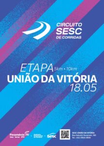 Um evento sempre muito bem organizado e que tm a simpatia dos corredores de rua, o Circuito SESC já tem data definida da etapa de União da Vitória, dia 18 de maio. As inscrições inclusive já estão abertas e podem ser efetuadas de forma eletrônica nas redes sociais do SESC. É bom garantir logo a vaga. Corrida de 5 e 10 KM.