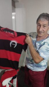 Carlinhos Bozó , artilheiro do Ferraria na década de 70, mostra sua histórica camisa . “Uma honra jogar neste time”.