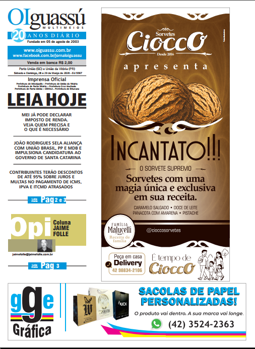 Ed 5568- 2026-03-30 e 31 – Seg e Terça 30 de março de 2026 Edições Impressas 1 min read Ed 5568- 2026-03-30 e 31 – Seg e Terça FacebookShare on XLinkedInWhatsAppEmailCopy Link Deixe um comentário Cancelar respostaYour email address will not be published. Δ FacebookPublicidade Horóscopo PublicidadeÚltimos Posts Anvisa aprova Mounjaro para criança e adolescente com diabetes tipo 2 23 de abril de 2026 MEC Livros: biblioteca digital já tem mais de meio milhão de usuários 23 de abril de 2026 ALUGUEL POR TEMPORADA EXIGE ATENÇÃO REDOBRADA NA HORA DE DECLARAR O IMPOSTO DE RENDA 23 de abril de 2026 NOVAS REGRAS DO MINHA CASA, MINHA VIDA 23 de abril de 2026 Publicidade Tags# #acidente #ADR #Bituruna #Canoinhas #ClaudioGugelmin #Coluna #CruzMachado #Economia #Educação #Esporte #Futebol #GeneralCarneiro #investimentos #irineopolis #ManchetesDia #Paraná #PM #Policial #PolíciaMilitar #portouniao #PrefeituraMunicipaldeUniãodaVitória #primeiroplano #PrincipaisJornaisPaís #SantaCatarina #saúde #SC #Segurança #Uniguacu #uniãodavitória (OP) Coronavírus COVID-19 Educação Investimento Irineópolis Obras Paraná PortoUnião SantaCatarina Saúde SuldoParaná UniãodaVitória Vacina Vacinação Publicação anterior Ed 5567- 2026-03-28 e 29 – Sab e Dom Próxima publicação Ed 5569- 2026-04-01- Qua Última publicação de Edições Impressas Ed 5582- 2026-04-20 a 23- Seg a Qui Ed 5582- 2026-04-20 a 23- Seg a Qui Facebook Share on X LinkedIn WhatsApp Email Copy Link Ed 5581- 2026-04-18 e 19- Sab e Dom Ed 5581- 2026-04-18 e 19- Sab e Dom Facebook Share on X LinkedIn WhatsApp Email Copy Link Ed 5579- 2026-04-16- Qui Ed 5579- 2026-04-16- Qui Facebook Share on X LinkedIn WhatsApp Email Copy Link Ed 5580- 2026-04-17- Sex Ed 5580- 2026-04-17- Sex Facebook Share on X LinkedIn WhatsApp Email Copy Link Ed 5578- 2026-04-15- Qua Ed 5578- 2026-04-15- Qua Facebook Share on X LinkedIn WhatsApp Email Copy Link