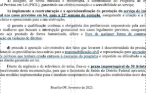 O Ministério Público do Distrito Federal e Territórios (MPDFT) emitiu uma recomendação para que os serviços de saúde garantam a realização de abortos legais em qualquer estágio gestacional, até os nove meses de gravidez, nos casos previstos pela legislação brasileira. Essa orientação surge após decisões do ministro Alexandre de Moraes, do Supremo Tribunal Federal (STF), que suspenderam resoluções do Conselho Federal de Medicina (CFM) que dificultavam a realização de abortos em gestações avançadas decorrentes de estupro.