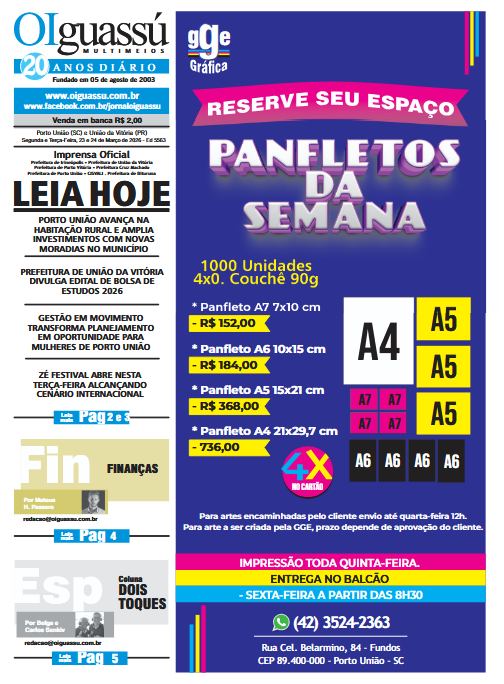 Inédito: maior evento da história musical das Gêmeas do Iguaçu inicia nesta terça-feira com formação gratuita e concertos abertos ao público Porto União entra para