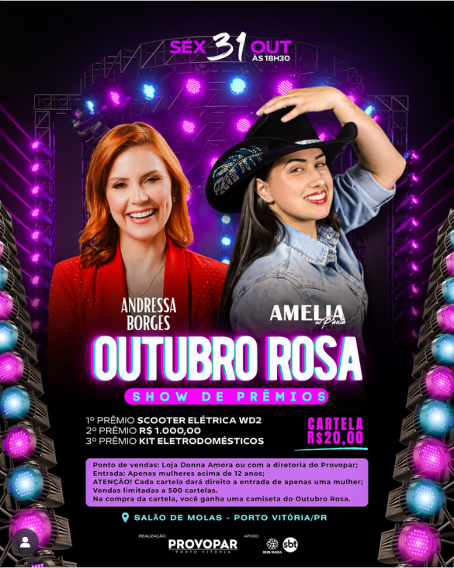 O Show de Prêmios Outubro Rosa reforça a importância da prevenção e do diagnóstico precoce do câncer de mama, além de valorizar o espírito de união entre as mulheres de Porto Vitória e região.
