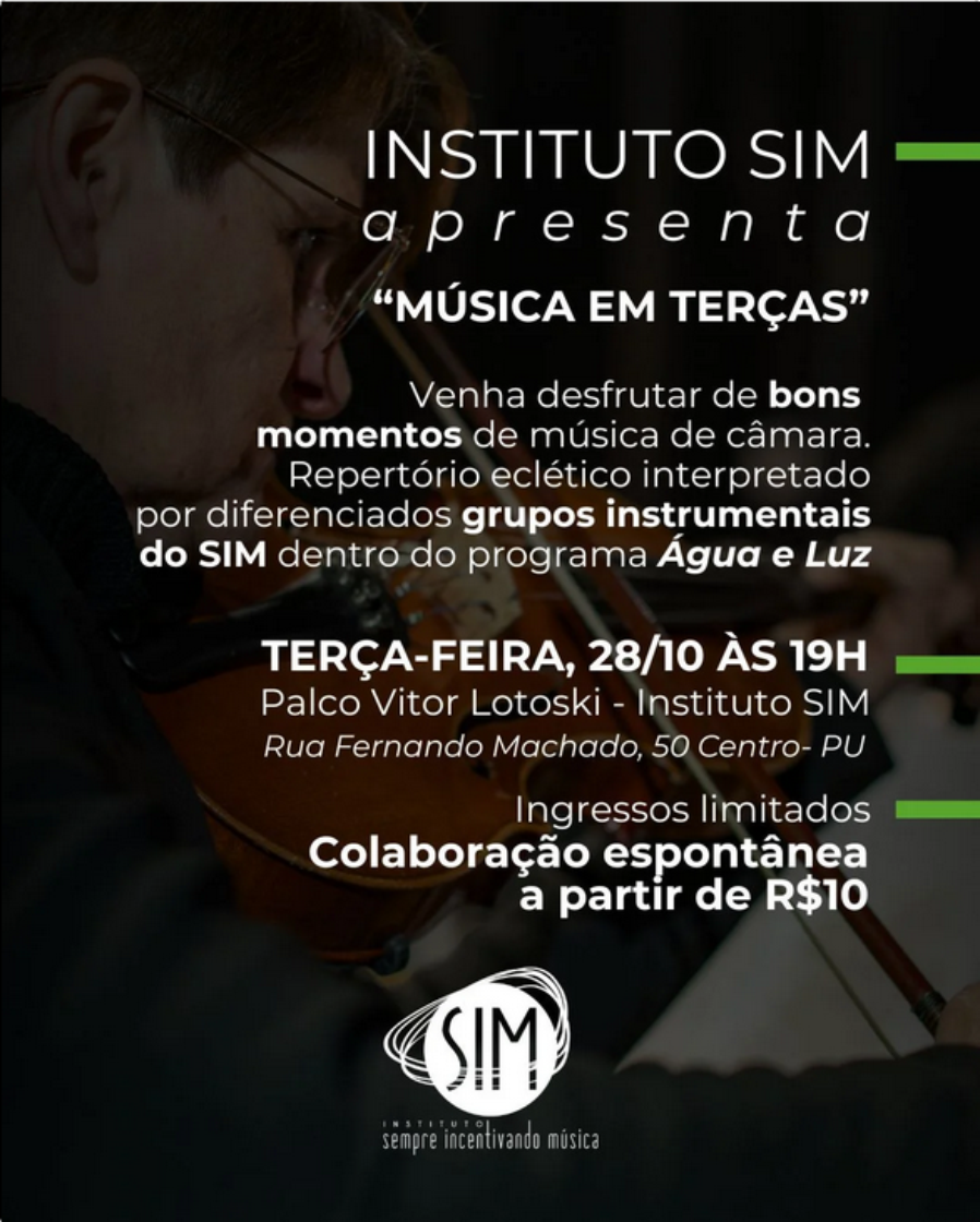 O Instituto SIM realiza na próxima terça-feira, 28 de outubro, mais uma edição do projeto “Música em Terças”, convidando o público para uma noite especial de boa música e convivência.