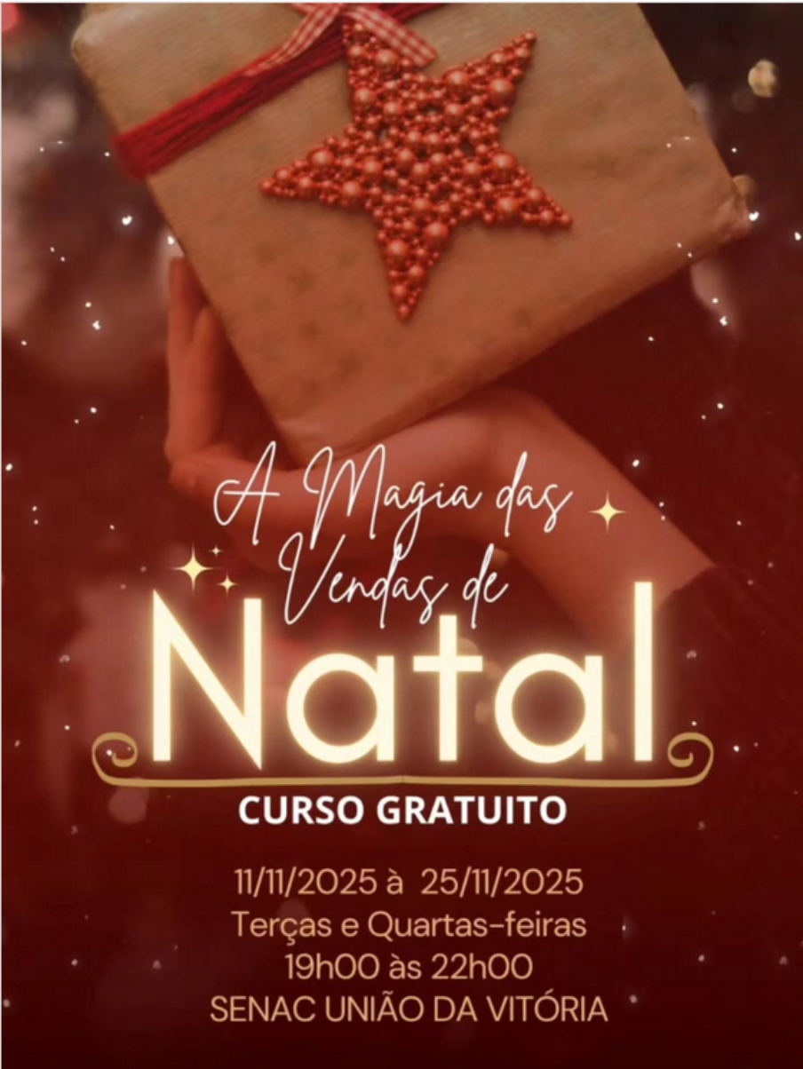 O Senac União da Vitória está com duas novas oportunidades gratuitas de capacitação voltadas a quem deseja impulsionar as vendas neste fim de ano. Faltando pouco mais de dois meses para o Natal, o momento é ideal para se preparar e aproveitar as oportunidades que o período oferece ao comércio.