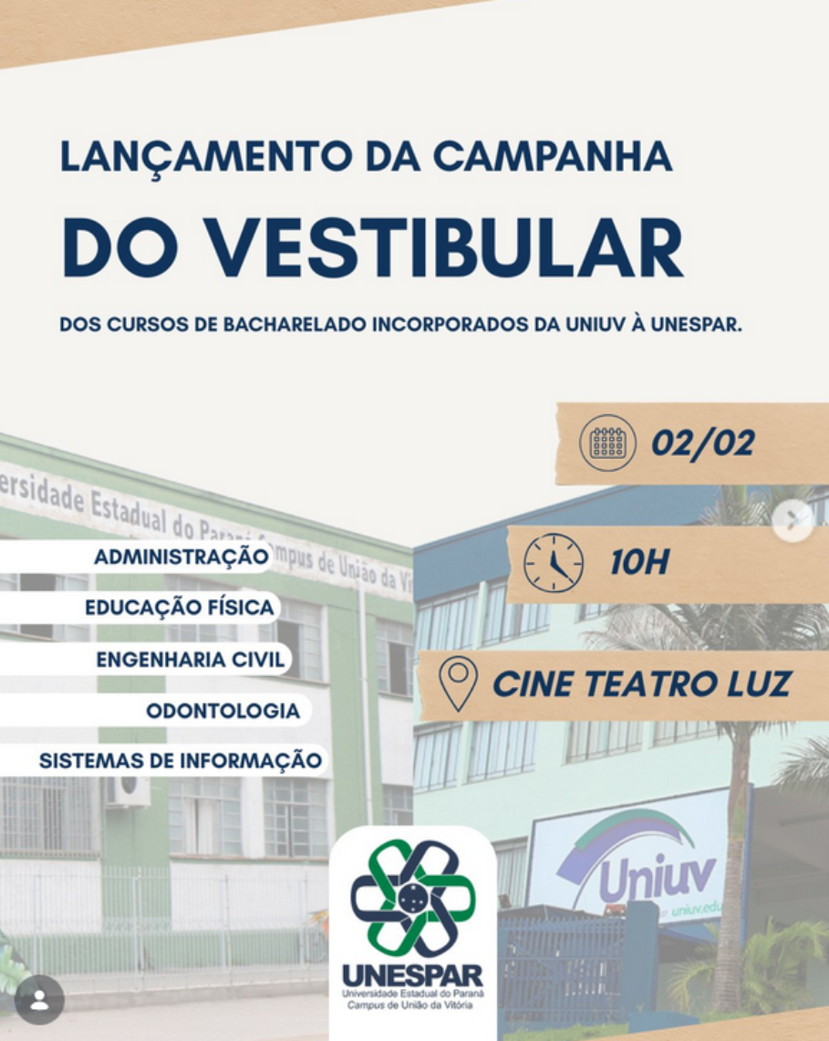UNESPAR LANÇA CAMPANHA DO VESTIBULAR DOS CURSOS DE BACHARELADO INCORPORADOS DA UNIUV
