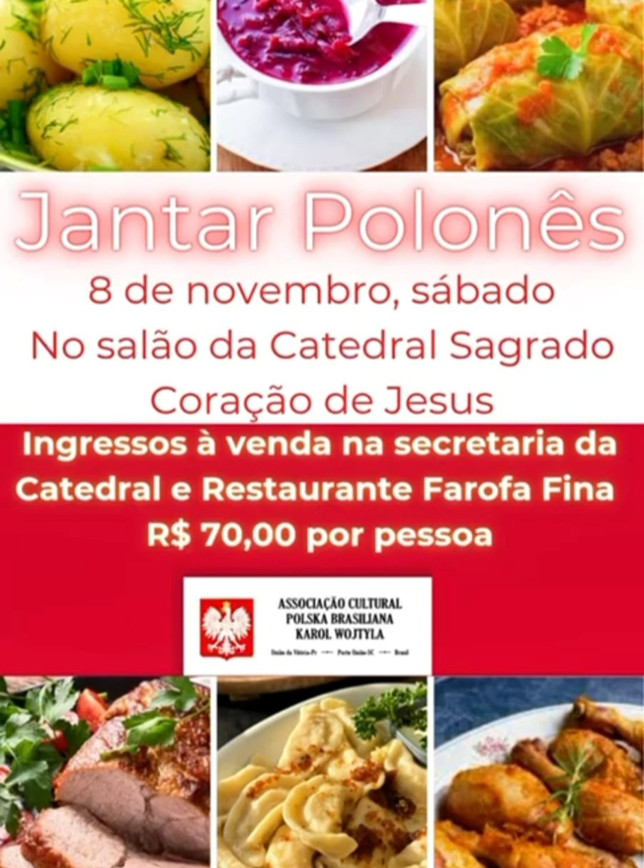 O Salão da Catedral Sagrado Coração de Jesus, em União da Vitória, será o cenário de uma noite especial de cultura e gastronomia no dia 8 de novembro de 2025, com a realização do Jantar Polonês da Independência da Polônia. O evento promete celebrar as tradições polonesas com muito sabor, música e alegria, reunindo a comunidade em um ambiente de confraternização e valorização das raízes culturais.